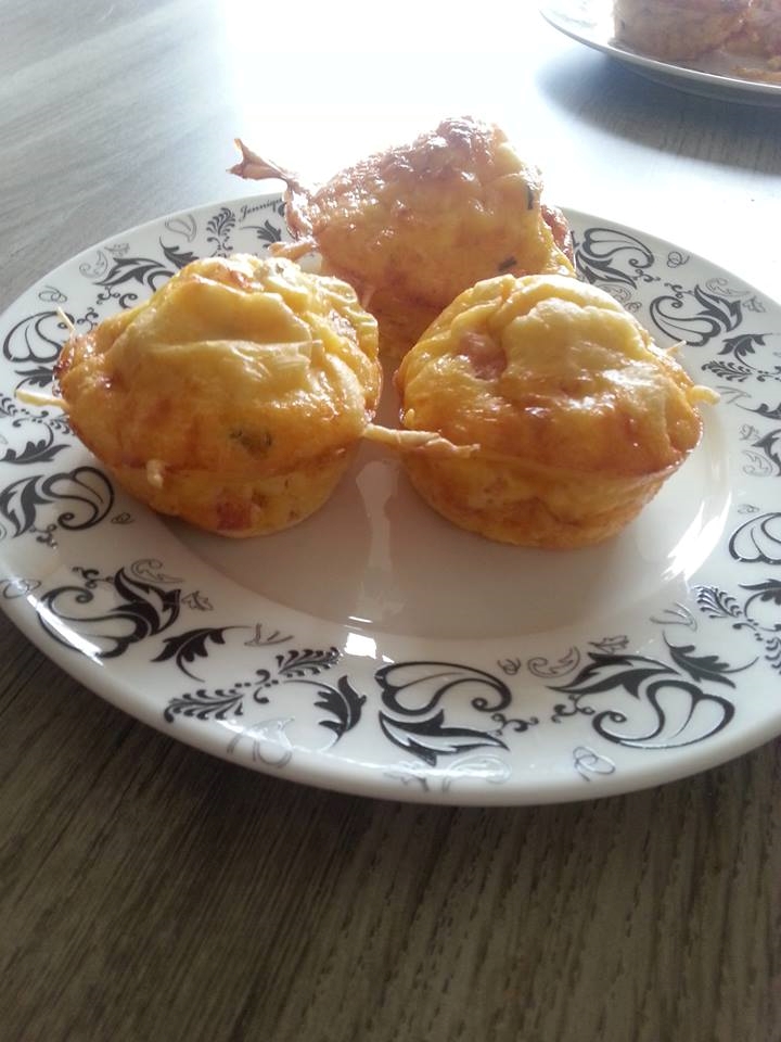 Dan het mengsel in zo'n cupcake bakplaat, geraspte kaas eroverheen en ff in de oven. Voilá, Mini quiches!