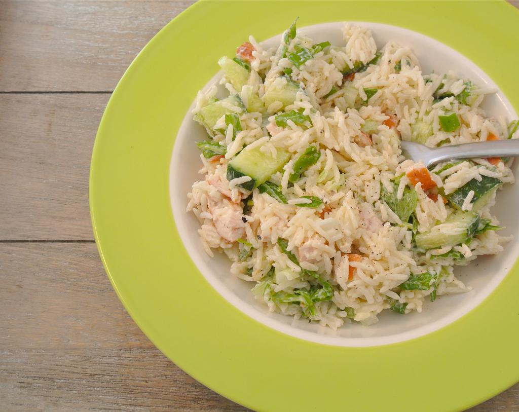 Rijstsalade met gerookte kip